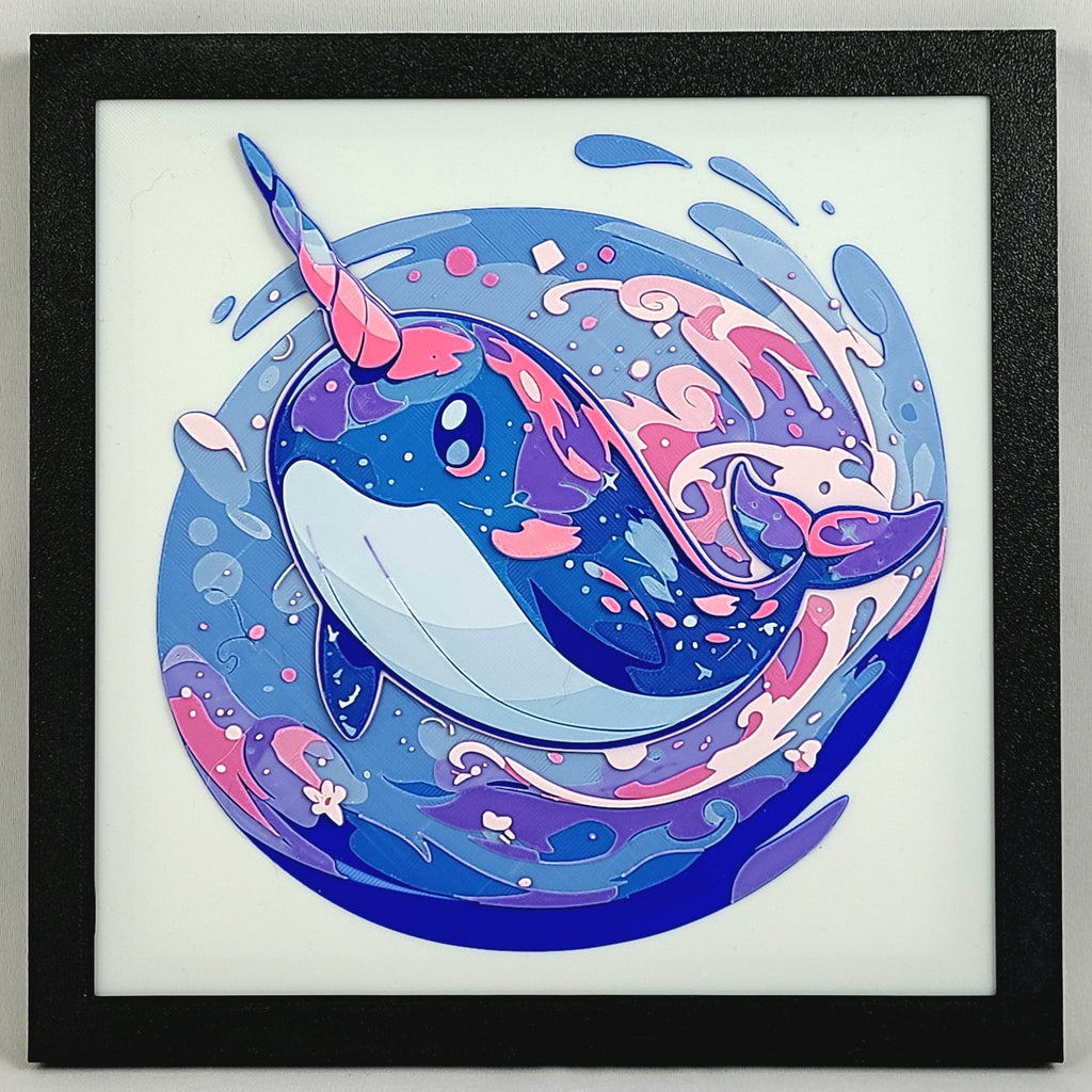 The Sea Unicorn filament painting is completely 3D printed out of biodegradable plant based plastic, giving this environmentally friendly piece of art a beautiful textured finish with incredible depth compared to traditional flat paintings. The depth created by the varying printed layer heights have an optical illusion effect that needs to be seen in person to be fully appreciated. Some appear like extra rich oil paintings and some have unique properties when viewed from different angles.
